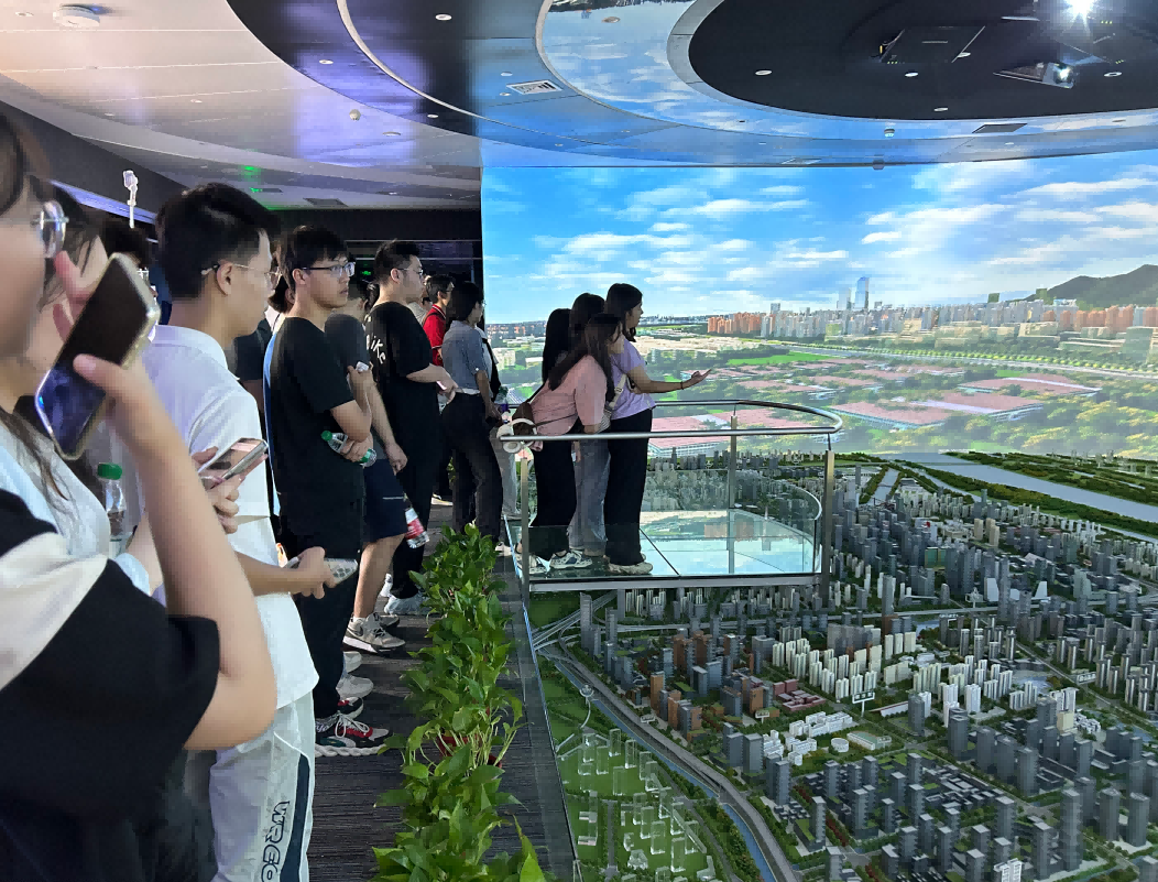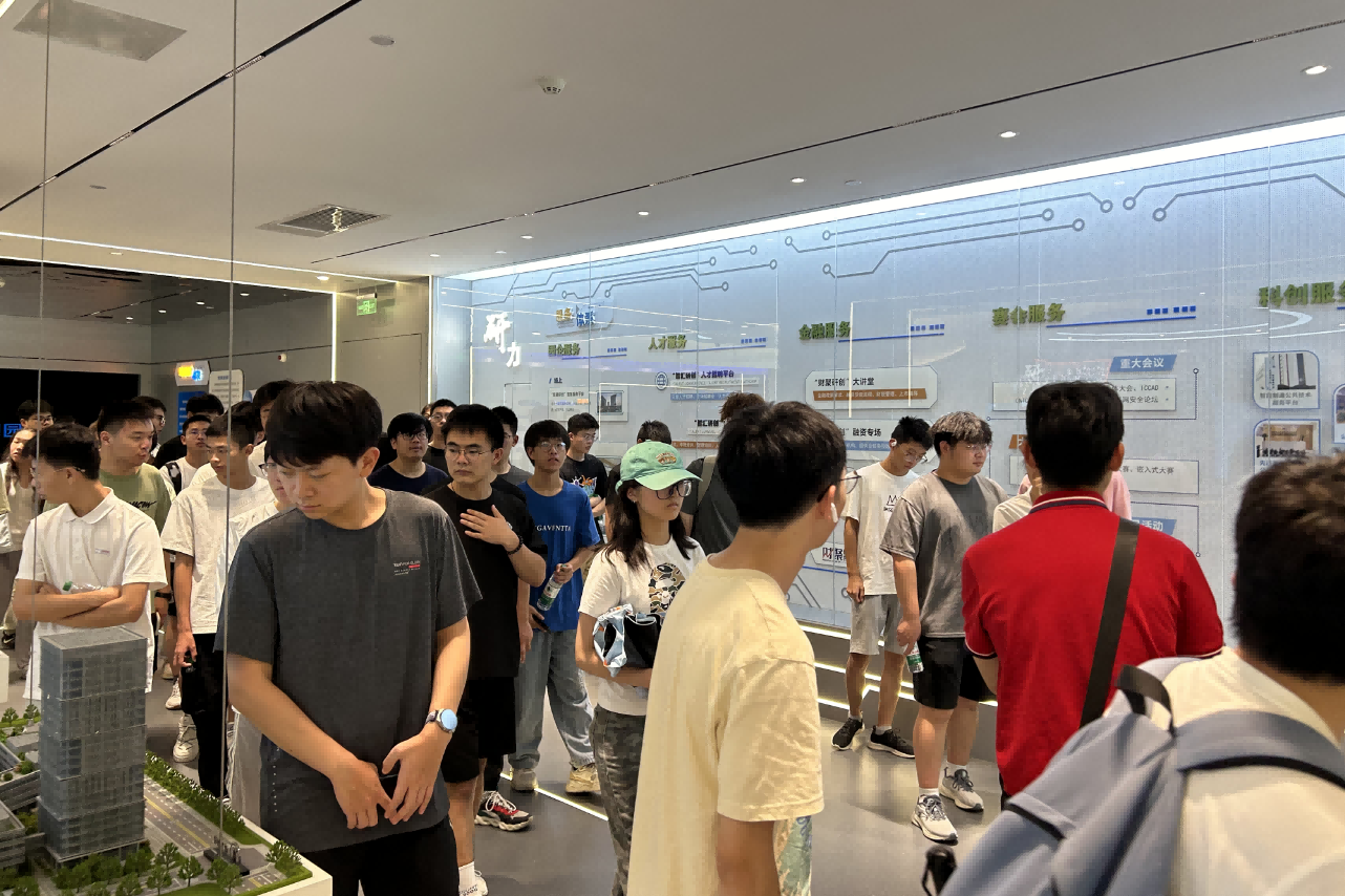 园区内现代建筑群错落有致,每一砖一瓦都蕴含着创新和科技的基因。kdpay钱包科技IT菁英暑期实训营的学员们怀揣着对科技的无限憧憬步入研创园展厅。展厅内部设计充满科技感,一块块巨大的模型和显示屏映入眼帘,生动展现了研创园的科技规划,以及从梦想走向现实的开展历程。